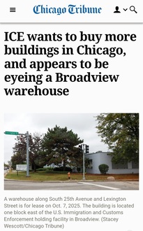 Stop ICE from expanding operations in Broadview in a 200,000 sq ft. Warehouse. "HOUSE OF HELL"The current building 1930 Beach Street is restricted to be inspected for Inhumane practices by Illinois Congressional Leaders. Chicago Sun-Times reports, “U.S. Sens. Tammy Duckworth and Dick Durbin, both Illinois Democrats, on Friday requested a tour of the Broadview ICE facility that has drawn heated protest for weeks, but they were denied entry,(2025, Armentrout). If ICE occupies the current 5000 square foot building and has DENIED entry for routine inspections, how much more would a 200,000 square ft building occupied by ICE would be even worst to inspect. Armentrout, M., (2025, October, 10). Illinois Democrats call for investigation of Chicago ICE raids. https://chicago.suntimes.com/immigration/2025/10/10/ice-investigation-chicago-illinois-congressional-democrats-robin-kelly4 of 100 SignaturesCreated by Rabbi Michael Ben Yosef