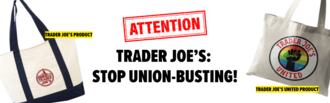 Drop Your Anti-Union Trademark Lawsuit!Trader Joe's United is gaining significant momentum—workers have successfully won union elections at four locations. But instead of supporting and bargaining in good faith with us, we’ve repeatedly experienced union-busting by Trader Joe’s corporate. This summer Trader Joe’s United released merch to help raise funds for the union. Just a week later, corporate threatened to sue, claiming consumers might be "confused" between the store’s products and our union’s products. Threatening to sue their own union is a new low and could set a dangerous precedent for other companies looking to intimidate and block union funding sources. Sign the petition to be in solidarity with Trader Joe’s workers and all workers across the country!14,942 of 15,000 SignaturesCreated by Trader Joe's United