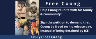 Free Cuong: Demand that ICE Release Cuong's Detainer!Cuong Phan is a 46 year old incarcerated Vietnamese immigrant who came to this country in 1984, when he was 8 years old. Cuong was sentenced to serve 15 years to life for gang-related shooting in September of 1994, even though he wasn’t the shooter. He was just an 18 year old boy when he was arrested. Cuong has since taken full responsibility for his actions, serving 28 years in State Prison. In this time, he’s completed multiple programs (Alcoholics Anonymous, Narcotics Anonymous, Criminals and Gangs Anonymous, Lifer's Activity Group, Anti-Recidivism Coalition, Meditation Buddhist Pathways, Going Out By Going In, Partnership for Re-Entry Program); built his skills in the trades (Vocational Machine Shop, Computer Services and Repair, Vocational Mill and Cabinet, Braille Transcriber); and continued his education to earn 6 college degrees. Cuong is now the Supervisor for the braille program at Ironwood State Prison, which helps produce books for blind and disabled students across the nation. The company he works for has also offered him a job when he’s free. Cuong was recently granted parole, pending Governor Newsom’s approval. His release will be in July of this year. However, ICE has issued a detainer on Cuong. This means that ICE requested the State Prison to notify them before releasing Cuong. On his release day, instead of being freed, Cuong will be detained by ICE, and potentially deported to a country he’s never known. Cuong should be reunited with his family and community, who are ready to support him and his freedom. Will you sign the petition TODAY to stop Cuong from being transferred to ICE?2,036 of 3,000 SignaturesCreated by Vanndearlyn Vong