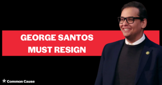 George Santos must resignGeorge Santos deceived his constituents to win a seat in Congress – and we can't let him remain in public office. Santos lied his way into office, inventing stories about his family background, work experience, education, values, and identity – even going so far as to capitalize off of tragedies like the Holocaust, the PULSE nightclub shooting, and 9/11. But national Republicans are rewarding his deceit – seating him on two committees. Kevin McCarthy even justified his actions by saying that “a lot of people” have lied about their resumes while running for office. This defense is simply ridiculous. George Santos lied about nearly every aspect of who he was – and deceived every single one of his constituents to gain power. If we don’t set a clear precedent now that this kind of dishonesty and corruption do not deserve to hold elected office, we’ll be giving a free pass to candidates to lie their way into public office – regardless of who they hurt in the process.72 of 100 SignaturesCreated by Common Cause