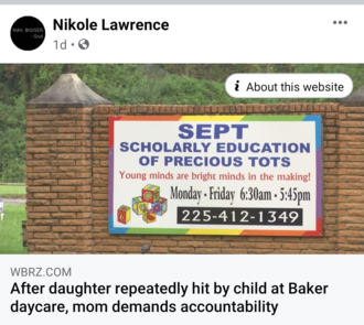 SHUT THIS DAYCARE DOWNBecause too many innocent children continue to lose their lives because of overlooked negligence and abuse!1,401 of 2,000 SignaturesCreated by NIKOLE LAWRENCE