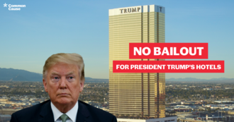 Tell Congress: No Bailout For Trump’s HotelsWhen President Trump took office, we demanded that he do what all other modern presidents have: divest from his businesses. That’s the only way to avoid the huge conflicts of interest that’d obviously come from running the country and a multi-million dollar business at the same time. Trump refused. And for his entire term, his administration has steered public dollars towards his properties -- while foreign diplomats have tried to curry favor with him by spending thousands of dollars at his hotels. Now we’re facing the prospect of Trump getting millions in bailout money from Congress’ upcoming stimulus package -- public money that should be going to help ordinary Americans. When asked specifically whether he’d accept a bailout, Trump said: “I don’t know… I have hotels. Everybody knew I had hotels when I got elected. They knew I was a successful person when I got elected, so it’s one of those things.” That’s right -- Trump is open to diverting money away from critical needs into his pocket. And as it stands, the Senate GOP's stimulus package doesn't adequately fund our healthcare system -- nor does it provide the more than $2 billion in funding elections experts say we need to protect every voter’s rights. It’s a huge conflict of interest for every member of his party -- who depend on Trump's favor for their political survival. Trump is forcing them to choose between funneling millions of taxpayer dollars into his pocket -- or angering a president who values blind loyalty over all else. It’s a clear test for every lawmaker of whether they’re loyal to their oath of office or to the president. And every one of them should reject any proposal that would allow Trump to get bailout or stimulus money for his businesses. Bailing out Trump’s business empire would be a clear-cut violation of our Constitution’s Emoluments Clause, which forbids the president from receiving money from the government -- precisely to prevent situations like the one we’re in right now. It’s incredible that we even have to say this, but: President Trump shouldn’t be looking for ways to fatten his wallet during a national crisis where lives are at stake. Congress must write into any stimulus package it passes that the American people won’t have to bail out the President's hotels. And, we must demand adequate transparency and oversight provisions, so the public knows in a timely fashion who IS getting the bailout money. Please add your name today.654 of 800 SignaturesCreated by Common Cause