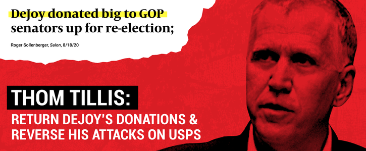 Demand Tillis Return Trump’s Postmaster DeJoy's Donations & Reverse His Attacks on USPS