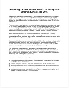 Reavis High School Student Petition for Immigration Safety and awareness (2025)